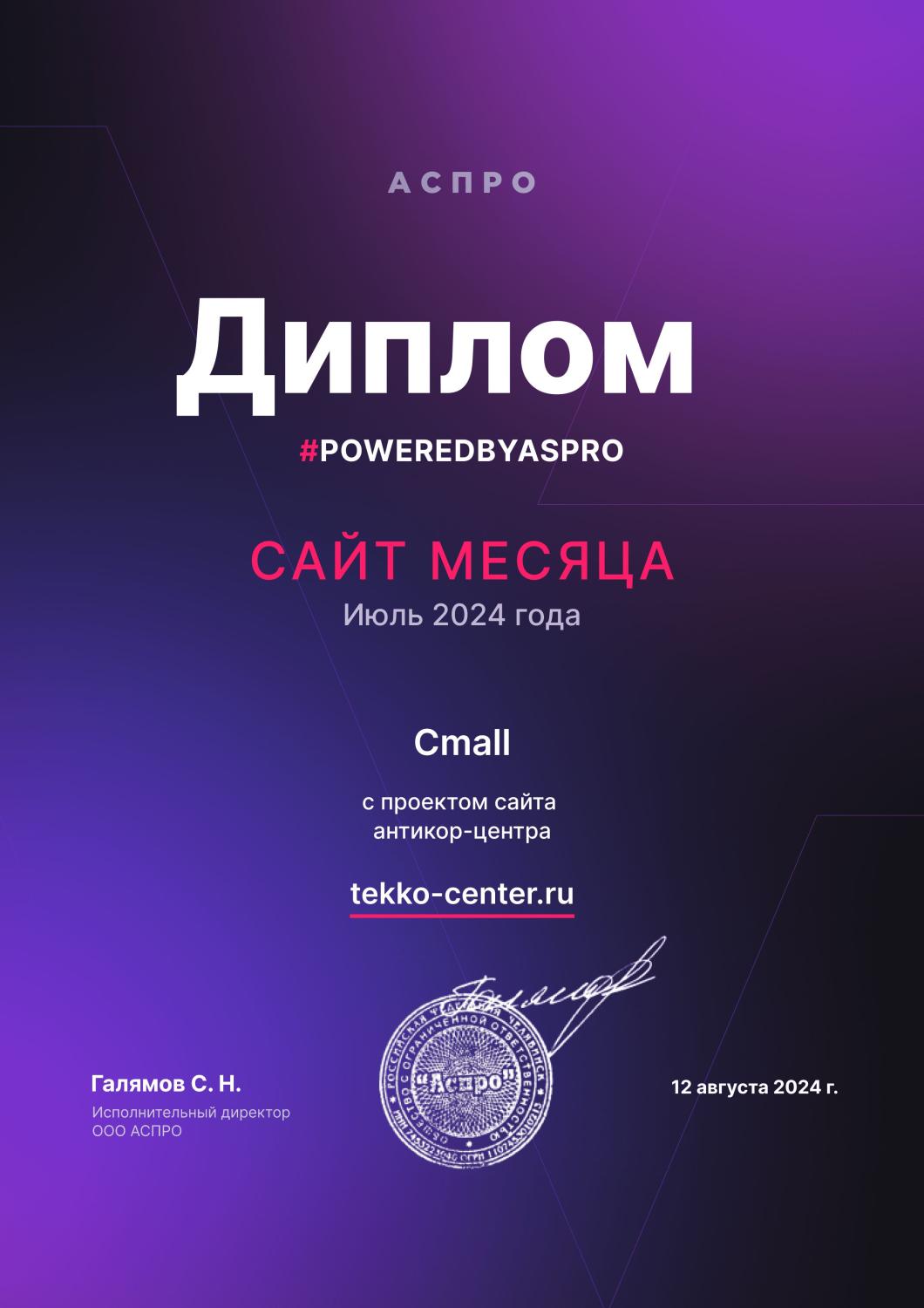 Сертификат проверенного партнера Аспро
